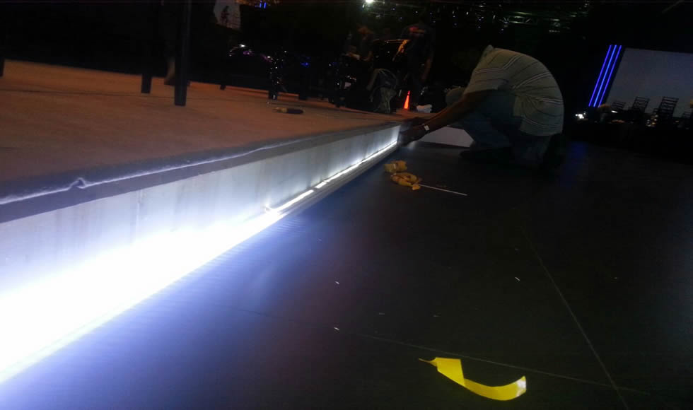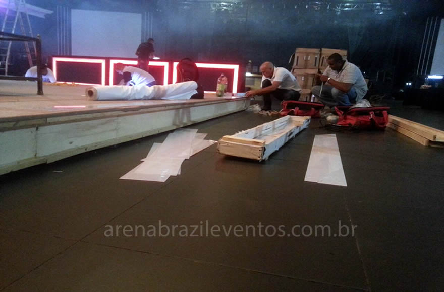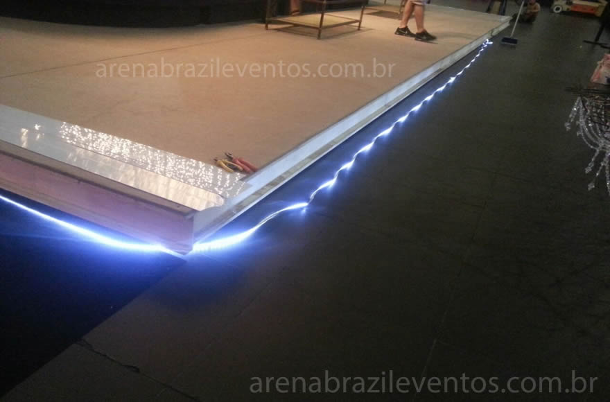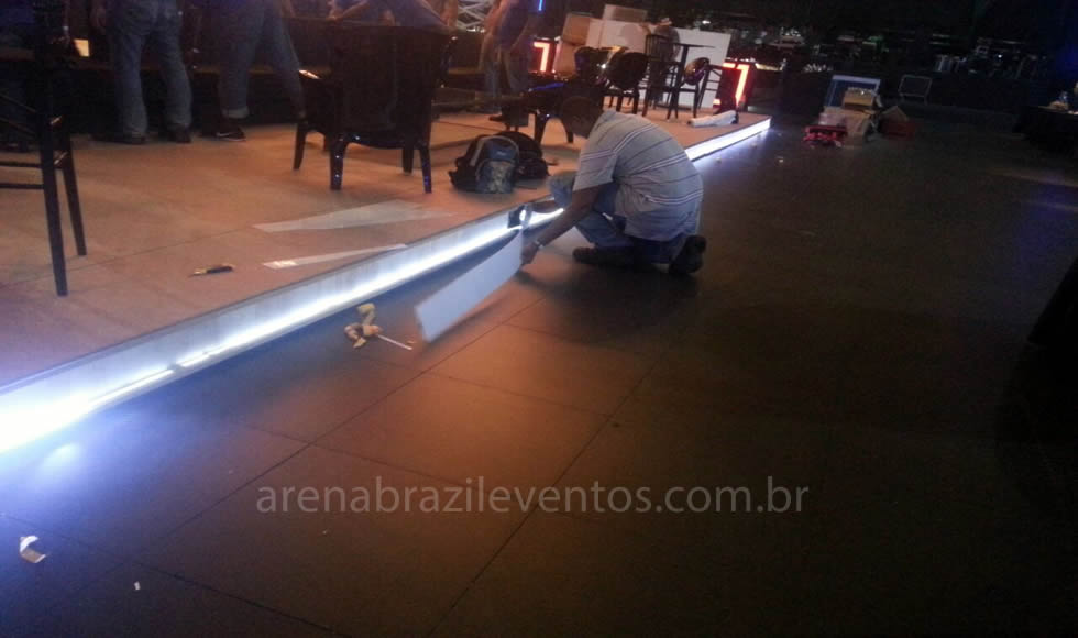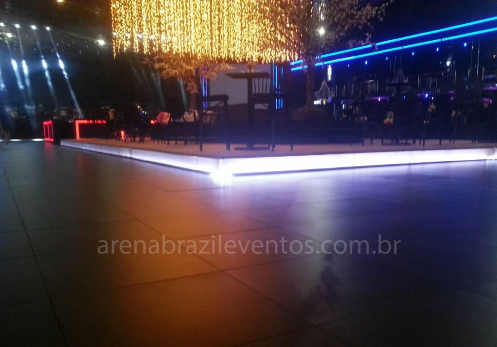O Piso Elevado, um dos grandes diferenciais Arena Brazil Eventos com borda em Led, agregando valor a toda cenografia.